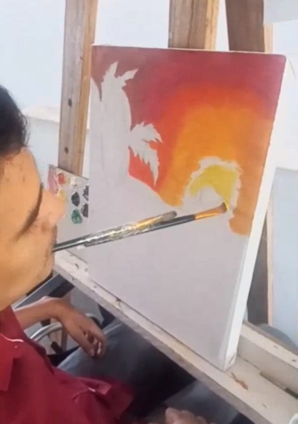 For his recovery, José Wilmer moved to the city of Ibagué, Tolima. In 2021, he met Alcidez García Giraldo (VDMFK Scholarship Holder), who told him about the Association. This motivated him to tackle his life project of mouth painting. Jose Horta began a course with the teacher Carlos Parra Duarte.